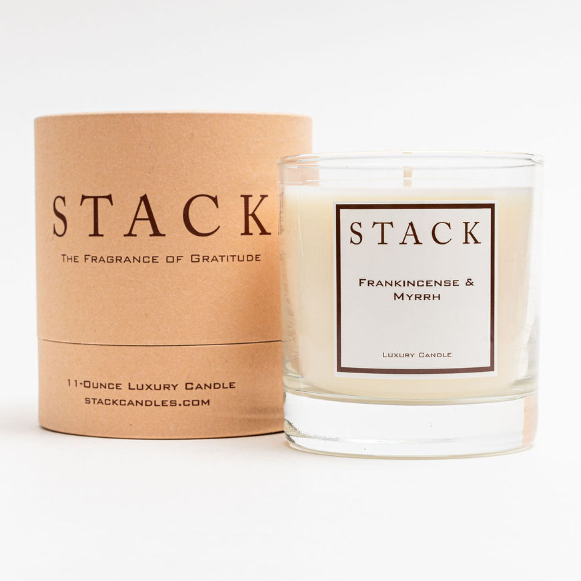 Each candle is poured into an 11-ounce jar with a dust cover. Candles have a burn time of approximately 40 hours.